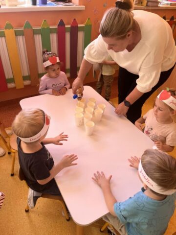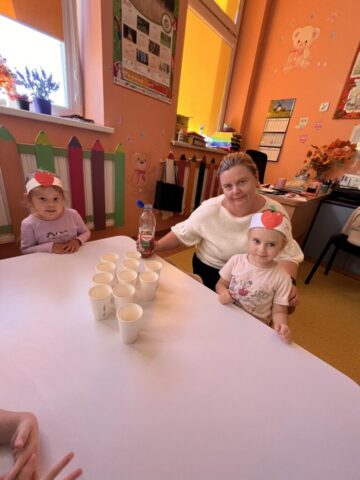 Nie zabrakło również degustacji świeżo wyciskanego soku jabłkowego 🧃, który dzieci chętnie piły, poznając przy okazji smak różnych odmian jabłek. Była to świetna okazja, aby porozmawiać z dziećmi o wartościach odżywczych jabłek i ich wpływie na zdrowie – szczególnie na odporność i dobre trawienie.