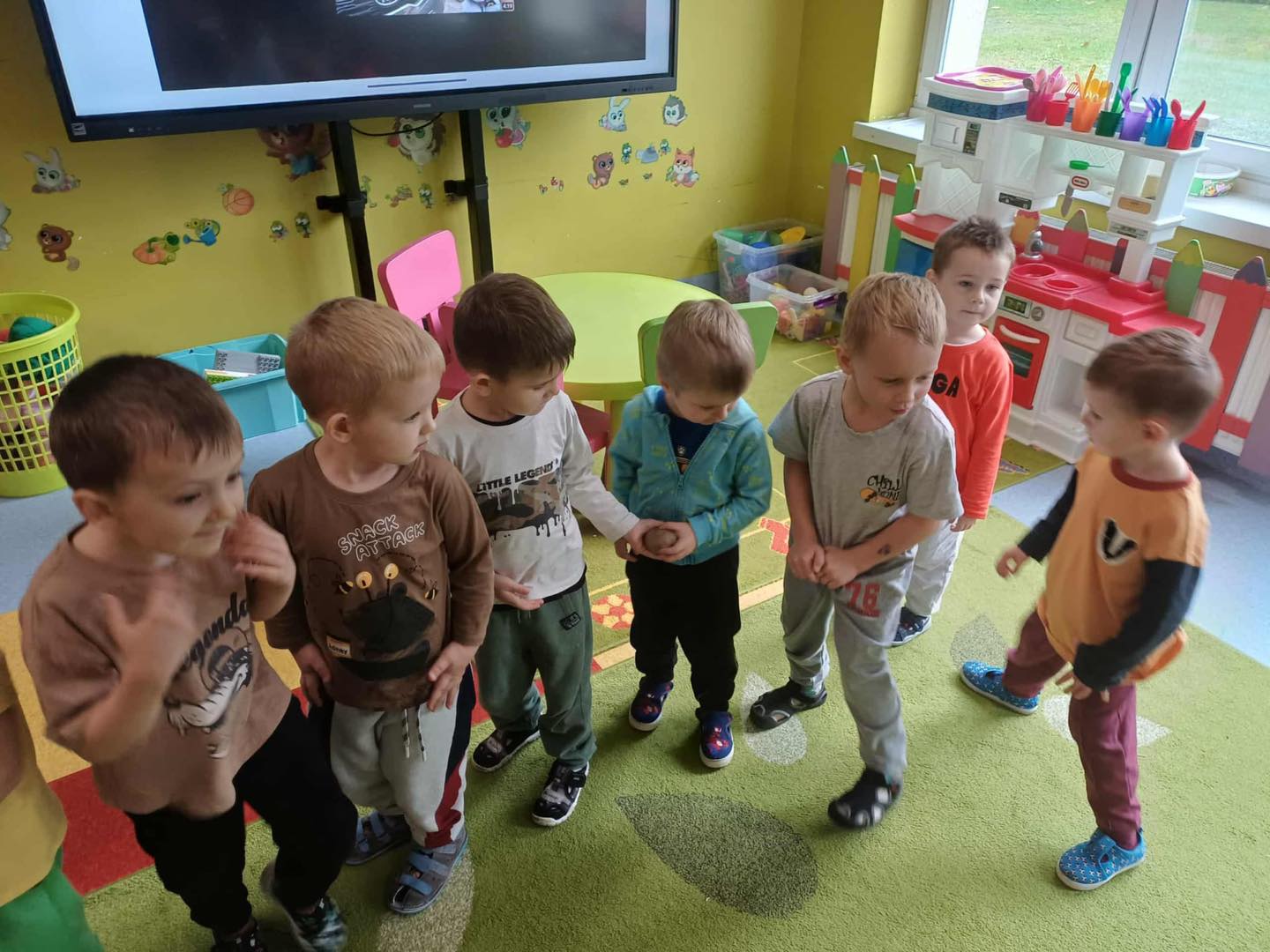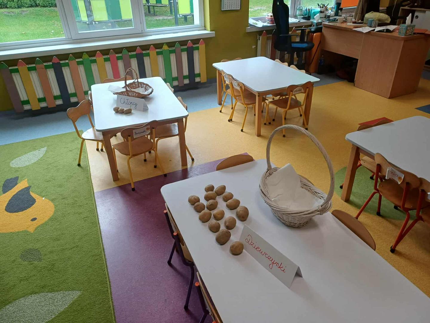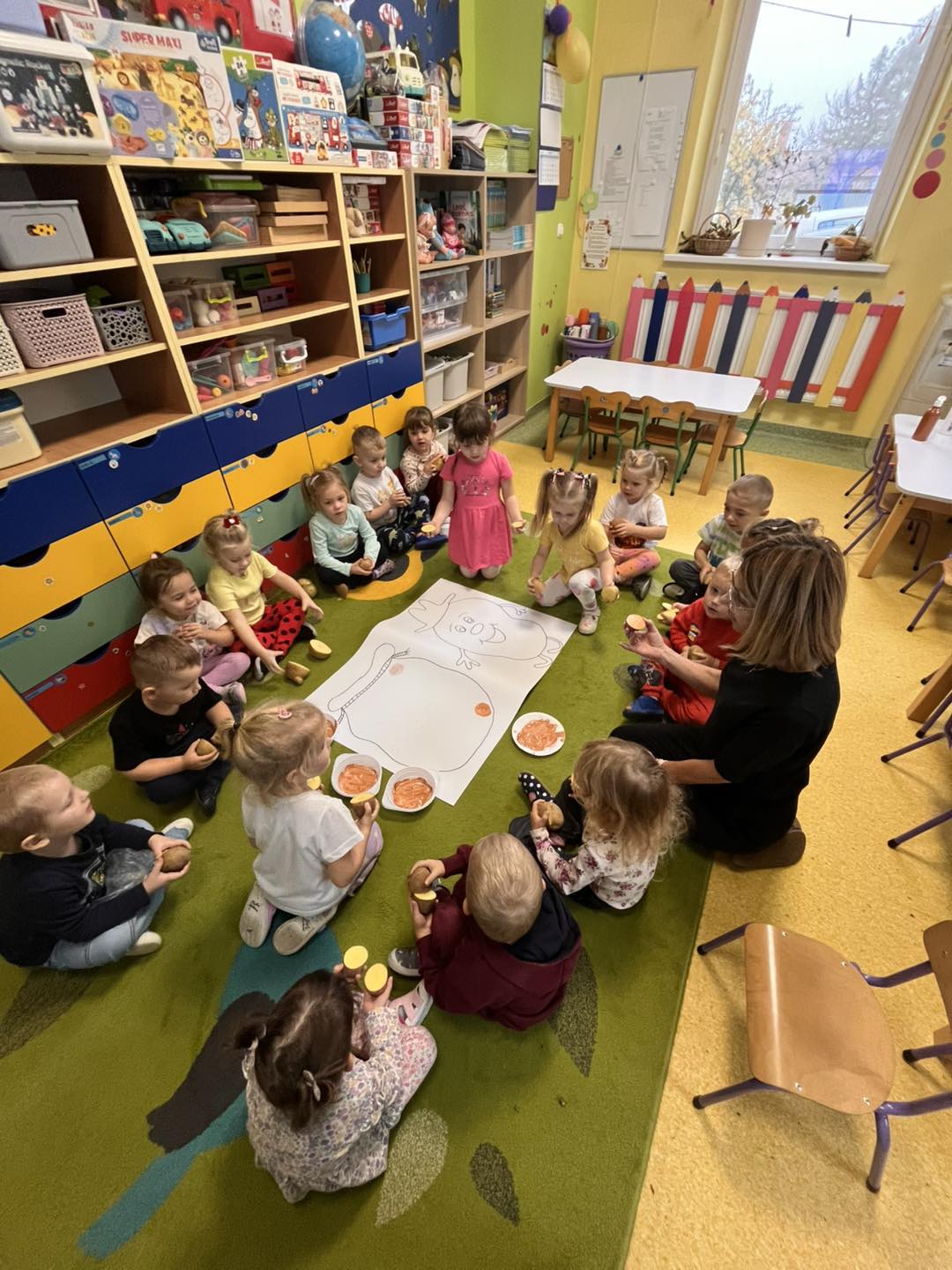 Na zakończenie dnia nauczyciele porozmawiali z dziećmi o różnych potrawach z ziemniaków 🍟🍽️ – przedszkolaki chętnie wymieniały swoje ulubione dania, takie jak frytki, placki ziemniaczane czy puree.