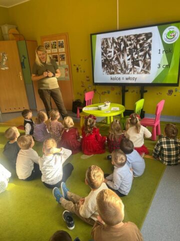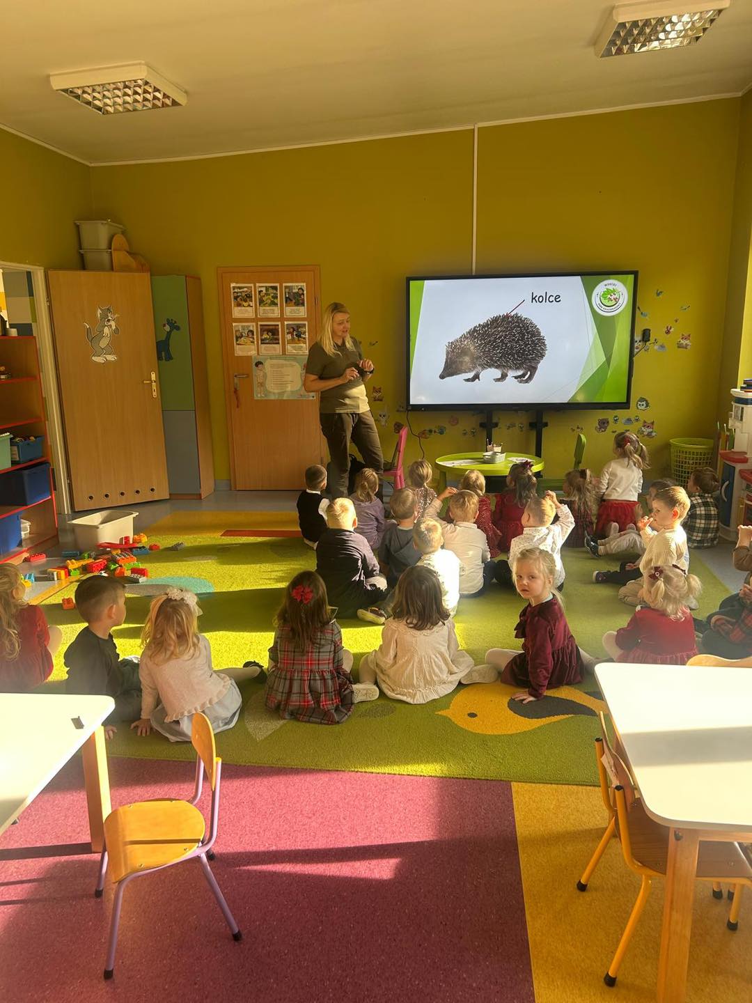 , dowiedziały się, jak możemy im pomagać oraz dlaczego są tak ważne dla naszego ekosystemu. To była niezwykle ciekawa i pełna radości lekcja przyrody, która zainspirowała dzieci do troski o naszych kolczastych przyjaciół.