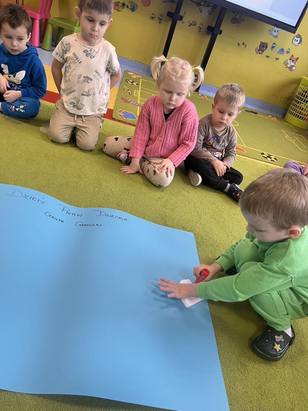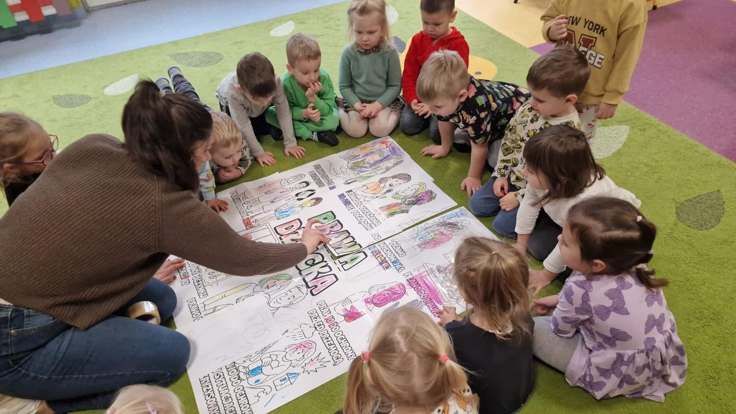 Pedagog i psycholog przedszkolny przeprowadzili warsztaty dotyczące praw dziecka, podczas których najmłodsi uczyli się, czym są ich prawa i dlaczego są tak ważne.