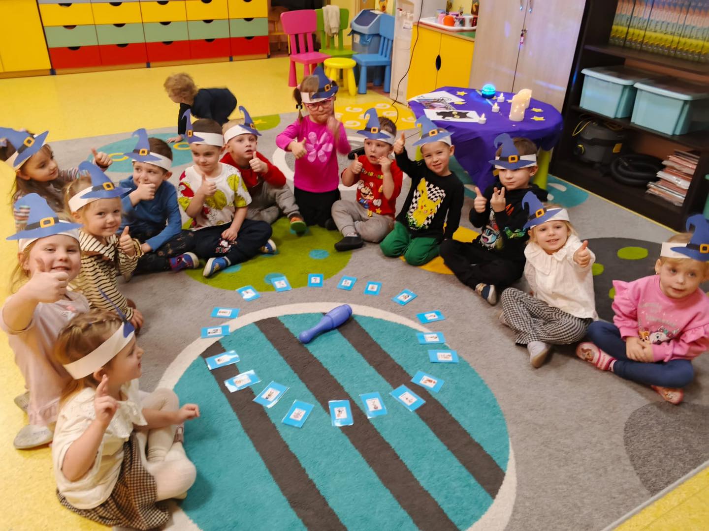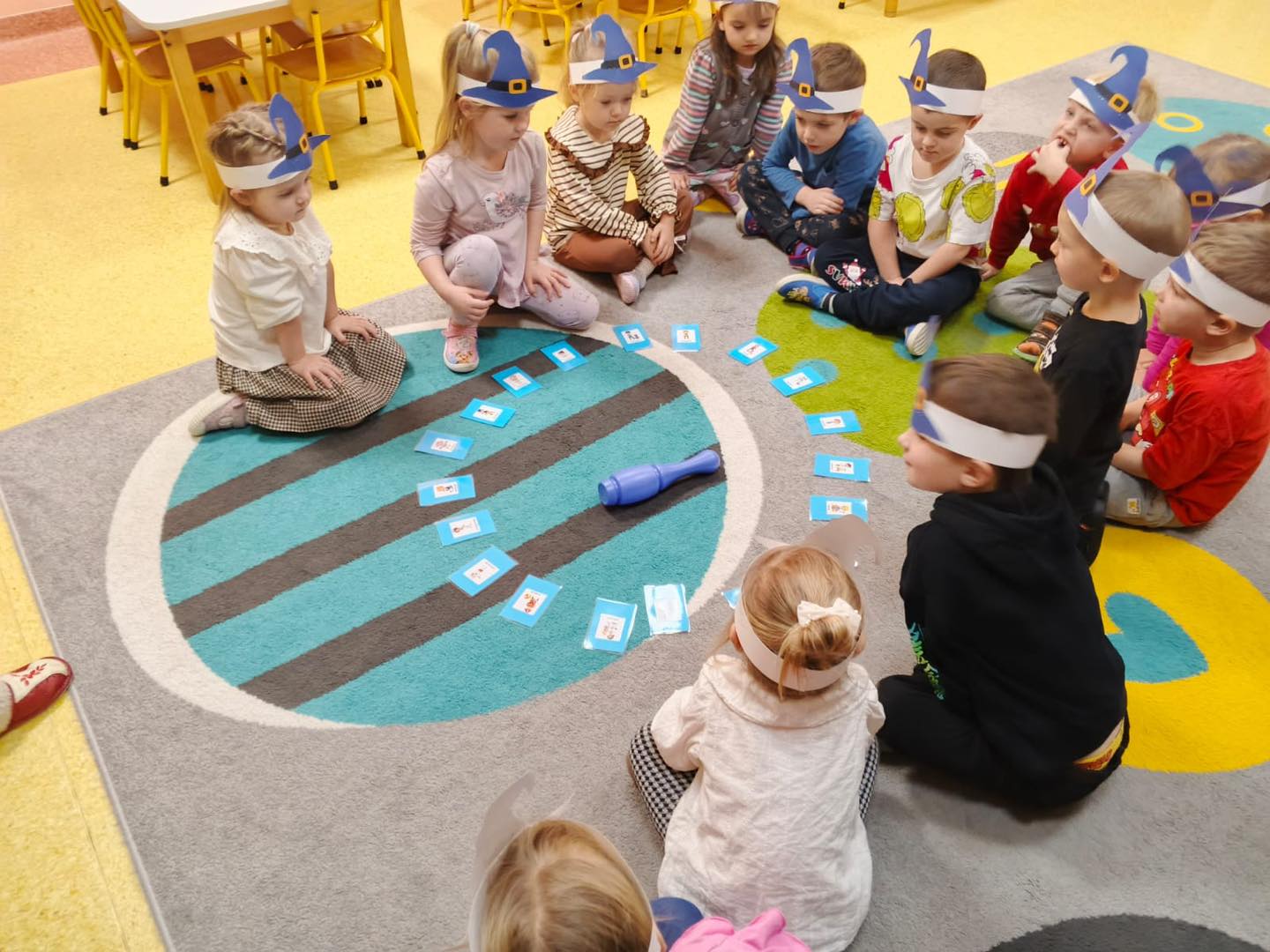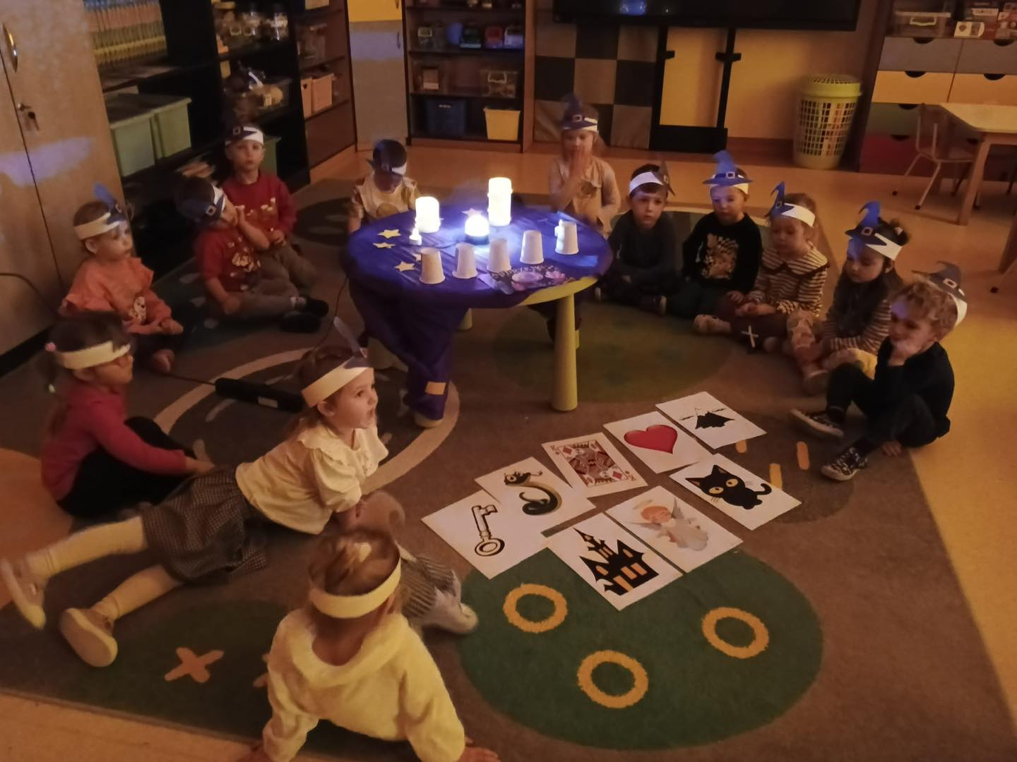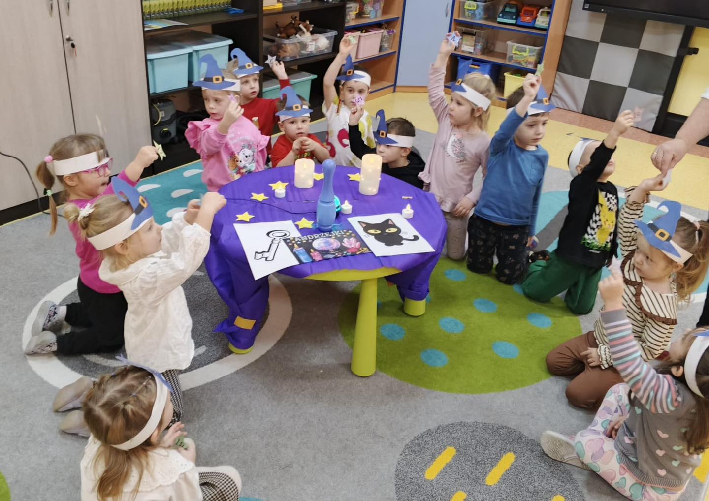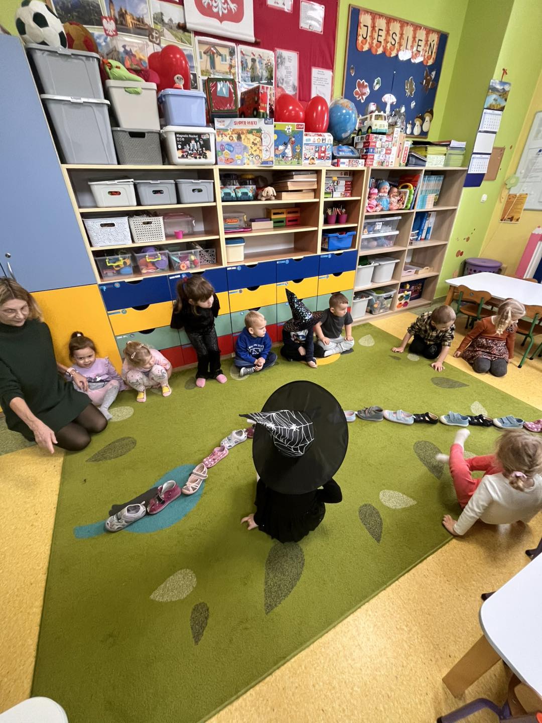 Potem zaczęła się prawdziwa zabawa! 🎉 Przedszkolaki brały udział w najprostszych, specjalnie przygotowanych dla nich wróżbach: laliśmy wosk 🕯️, losowaliśmy karteczki i ustawialiśmy buty 🥿 . Ile było przy tym radości!