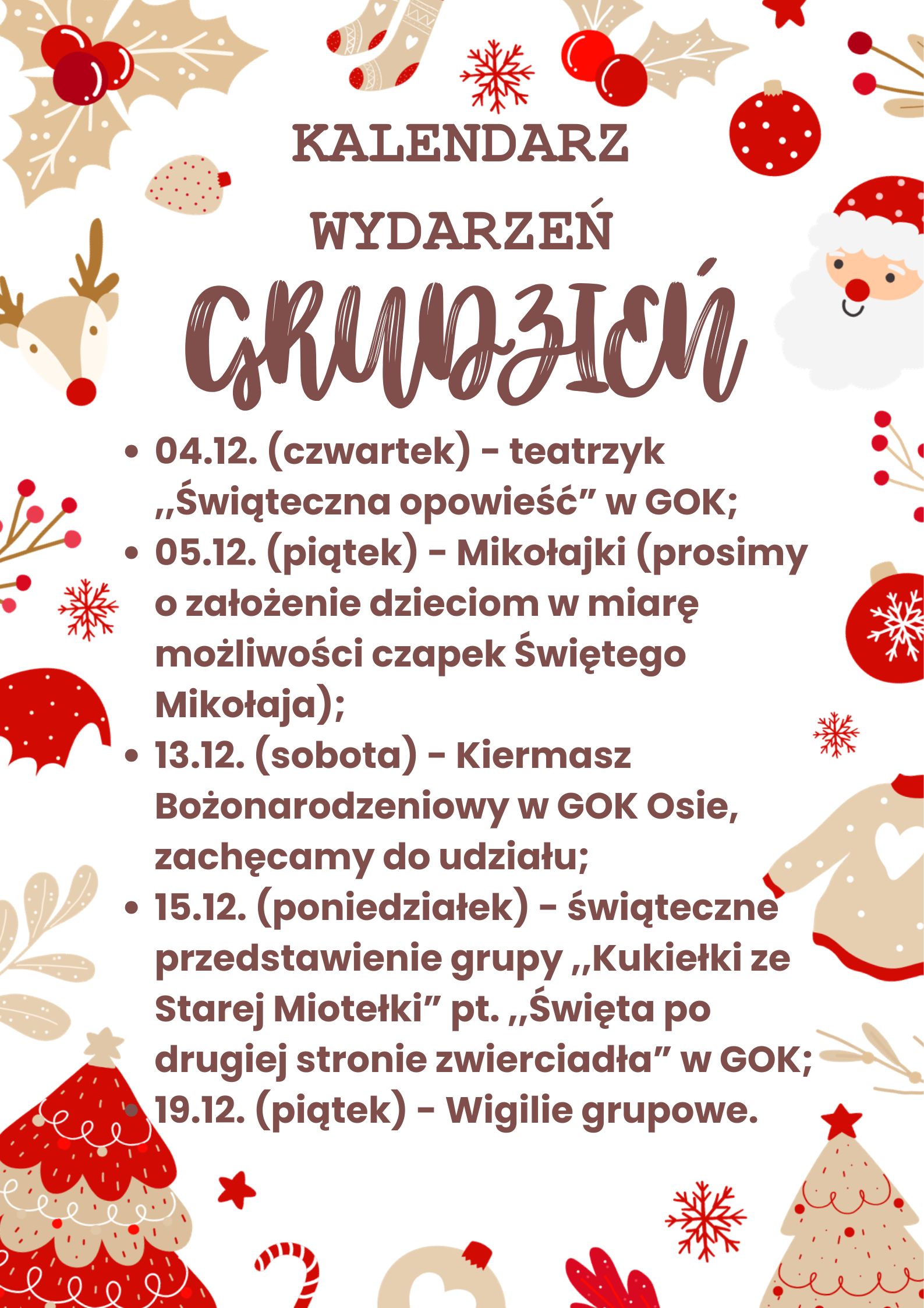 Kalendarz wydarzeń – grudzień.