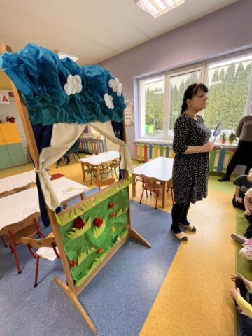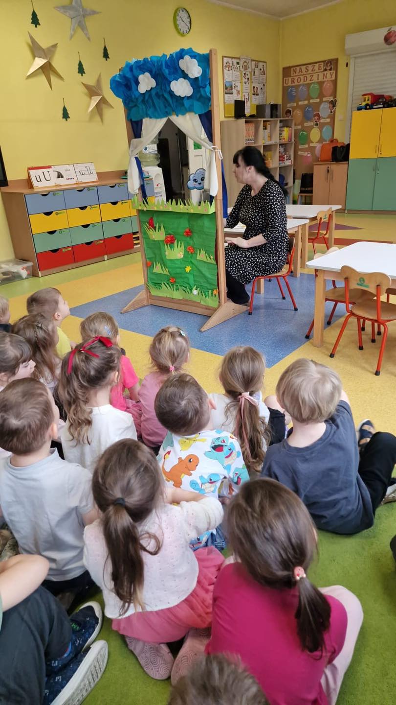 🍎 Wychowawczyni grupy Jabłek – pani Kamila – przygotowała wyjątkowy teatrzyk z udziałem bajkowych postaci, który w przystępny i delikatny sposób przybliżył dzieciom temat depresji oraz pokazał, jak ważne jest wsparcie przyjaciół i dorosłych.